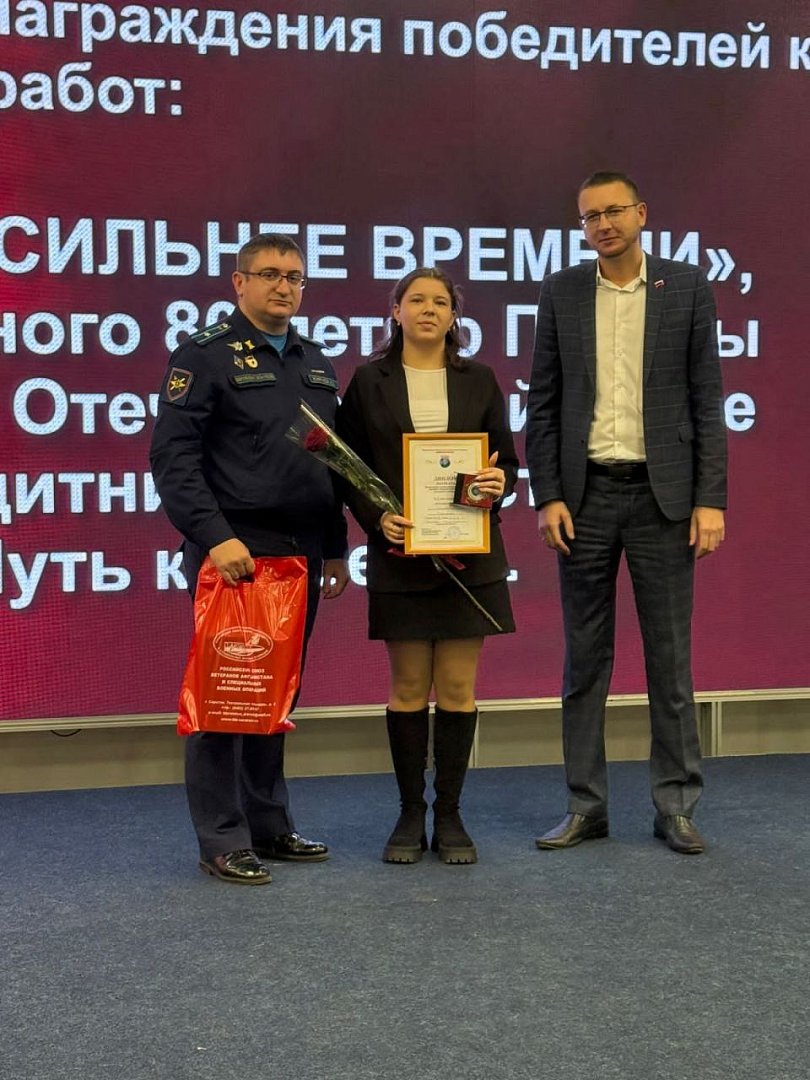 На уровне области в составе жюри конкурса были представители министерства внутренней политики и общественных отношений, министерства культуры и комитета молодежной политики Саратовской области. И в один из ноябрьских дней в историческом парке «Моя история» г. Саратова состоялось награждение участников конкурса. Заслуженную награду получила самойловская школьница Елизавета Мирошникова, которая стала победителем конкурса сочинений. Ей вручены медаль лауреата, Диплом Всероссийского патриотического конкурса «Память сильнее времени» и подарок. Поздравляем Елизавету с победой в региональном этапе конкурса и желаем дальнейших успехов!
