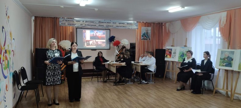 Ученики 9 класса Святославской школы Аксинья Аратова, Юлия Дронова, Артём Коробейников и Михаил Шевченко, участники «Урока мужества», который для них и зрителей провела Галина Ивановна Решетникова, а также ведущие-декламаторы Елена Александровна Комарова, Людмила Фёдоровна Кругова и ученицы 10 класса Полина Назарчукова и Татьяна Новохатская, постоянные участники общесельских мероприятий, не просто донесли информацию до гостей, а своим эмоциональным порывом создали атмосферу соучастия для всех присутствующих в зале. Бессменный участник художественной самодеятельности Наталья Мищенко исполнила патриотическую песню «Небесная рать», которая никого не оставила равнодушным.