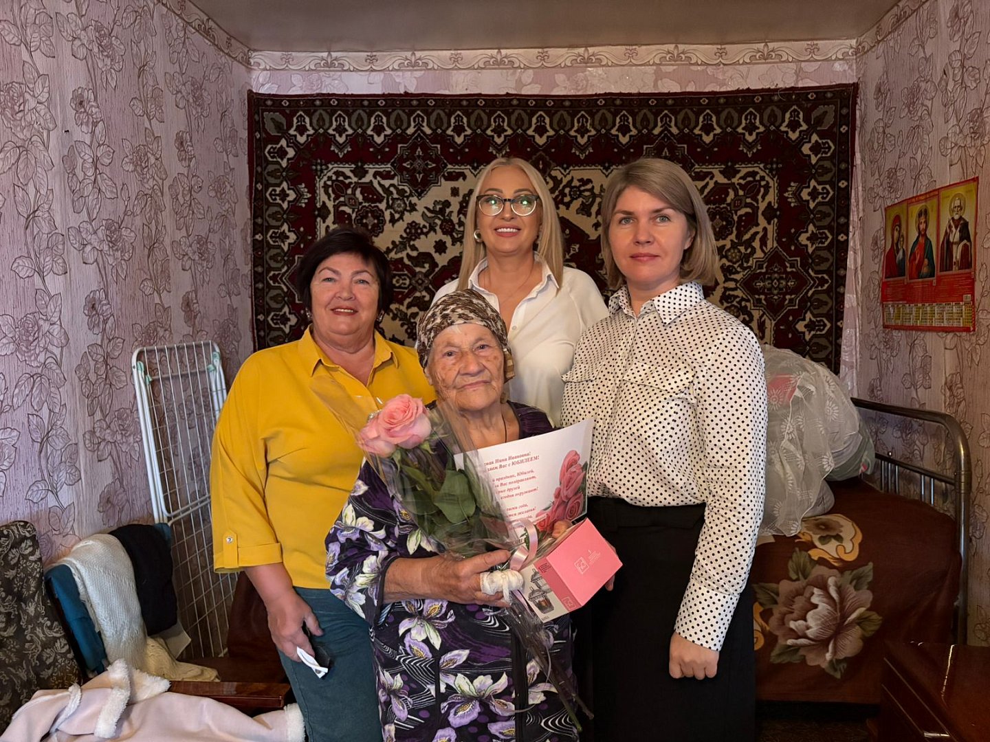 И, конечно же, подольше прожить Нине Ивановне желали заместитель директора КЦСОН Светлана Сергеевна Суровцева, председатель Общественного Совета, руководитель Общественной приемной партии «Единая Россия» Людмила Александровна Бессонова, заведующая отделом ЗАГС Ирина Анатольевна Филонская, которые преподнесли юбилярше подарки и цветы: «Вам и не дашь Ваш возраст!»