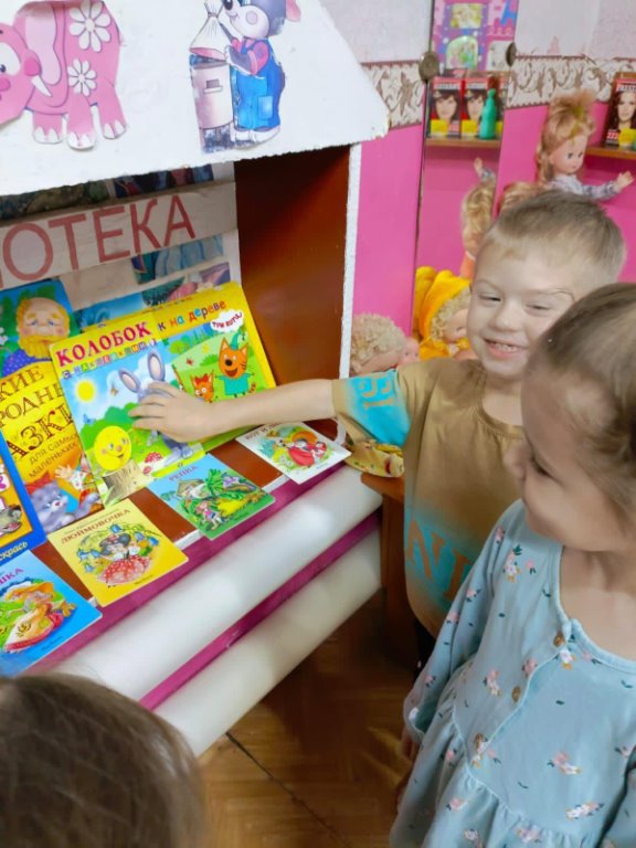 Воспитатель рассказала детям о значении книг в жизни людей. Дошкольники посетили библиотеку в группе, где дети увидели разнообразие книг, узнали уже знакомые им книги и с интересом рассматривали картинки в новых.