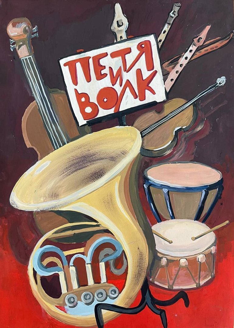 Савельева Ксения – 14 лет – Художественная студия Радищевского музея - афиша к спектаклю школьного театра «Синяя птица», г. Волжск, Республика Марий Эл «Петя и волк» по мотивам симфонической сказки Сергея Прокофьева;
