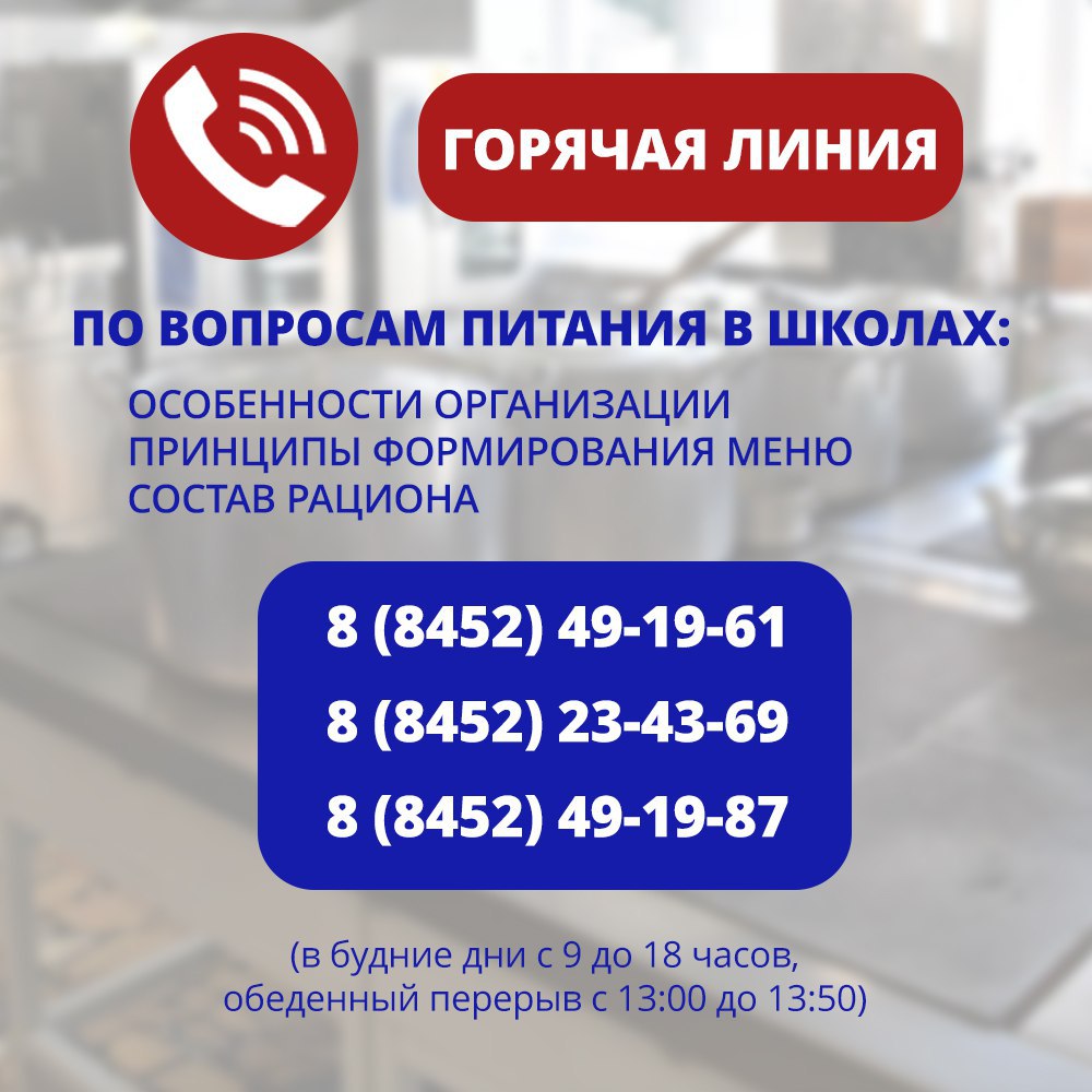 ️ Подробные разъяснения по единому меню, принципах его формирования, составе рациона и так далее можно получить по телефонам горячей линии в будние дни с 9:00 до 18:00, перерыв с 13:00 до 13:50.