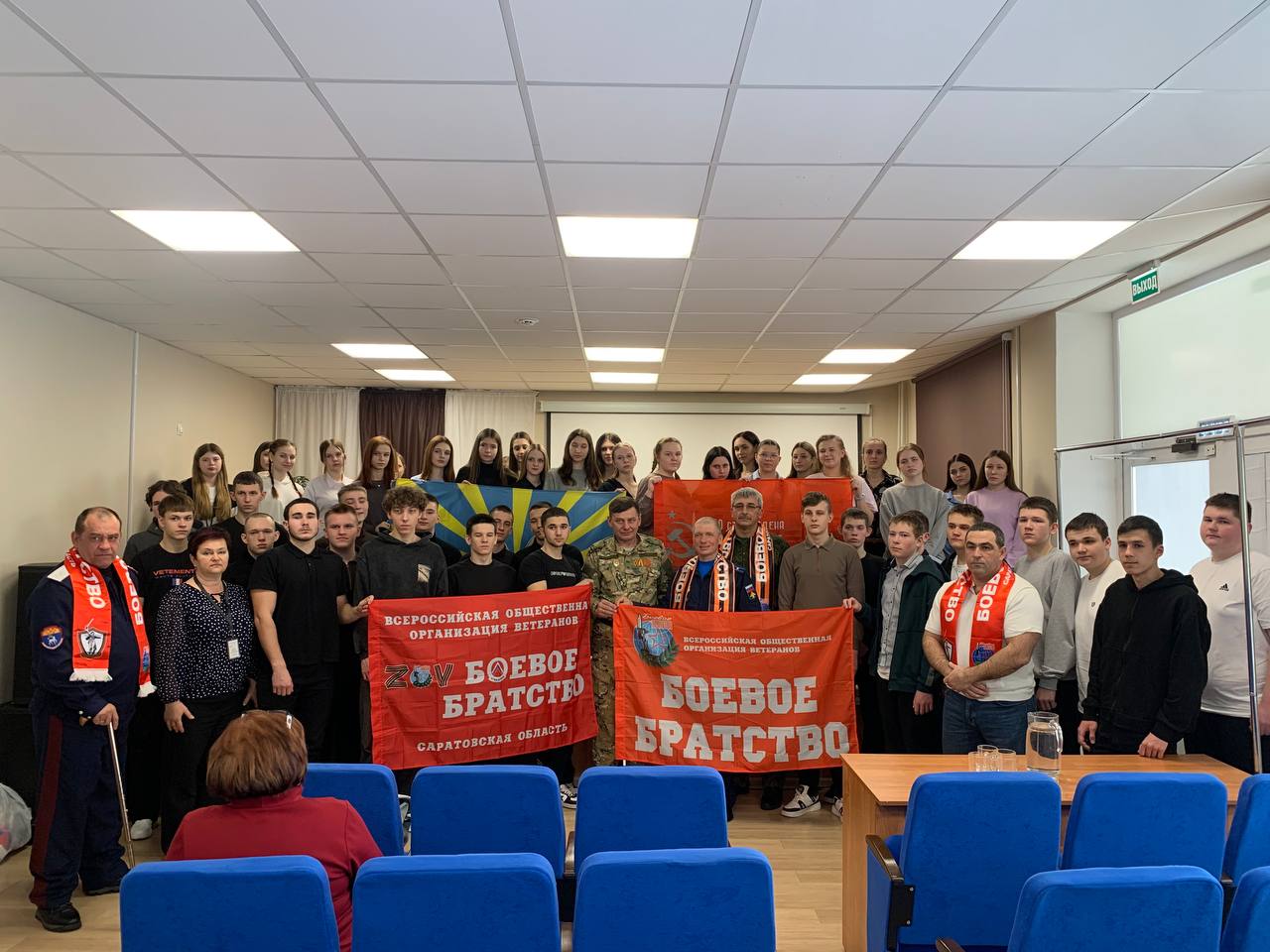 И на днях старшеклассники Самойловской средней школы №1 в рамках «Урока мужества» встретились с представителями Саратовского областного отделения Всероссийской общественной организации «Боевое братство» и провели мероприятие, приуроченное ко Дню защитника Отечества. С ребятами беседовали военнослужащие 121 гвардейского тяжелого бомбардировочного авиационного полка: гвардии майор Дмитрий Александрович Андреев, гвардии старший прапорщик Вячеслав Юрьевич Гарькуша и гвардии старший прапорщик Иван Иванович Иваненко из г. Энгельса. Встреча получилась интересной и информативной.