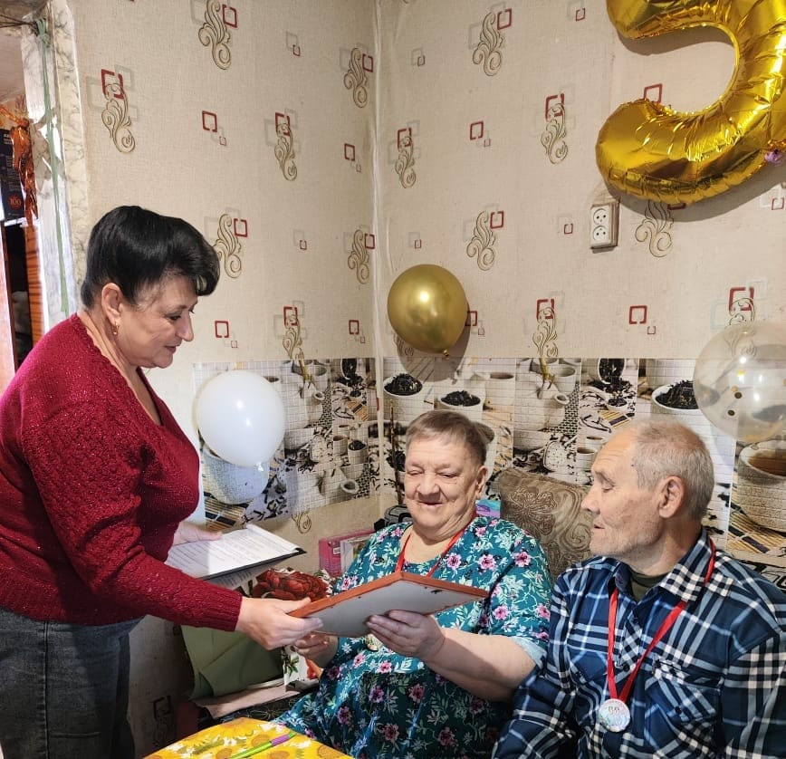 Познакомились Валентина Николаевна и Анатолий Кузьмич в станице Краснодонецкой Белокаливенского района Ростовской области. Там и зарегистрировали брак. Муж работал шофером, жена – диспетчером. В 1976 году вернулись на малую родину Валентины Николаевны – в Николаевку. Мечтали о счастье, и не зря пролетели годы: создана крепкая и дружная семья. Но главное богатство, которым они обладают – это дети, внуки и правнуки. Супруги вырастили и воспитали семерых детей, один из которых в настоящее время находится в зоне проведения СВО. У юбиляров – 16 внуков и 11 правнуков. Сохранить, сберечь и пронести через годы тепло, заботу и любовь – сложнейшая задача, поэтому для настоящего поколения так ценен пример семейного счастья.