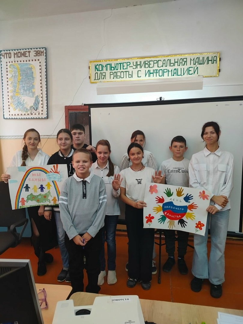 Для учащихся 5-10 классов Благовещенской школы прошло мероприятие «В единстве наша сила!». Из слайдовой презентации ребята узнали об истории праздника, об освобождении Москвы от польских интервентов, о роли Минина и Пожарского в объединении страны.