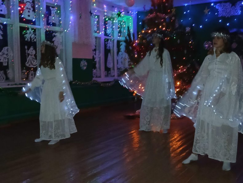 Вечер продолжил новогодний концерт. Концертная программа была разнообразной и интересной - песни, сценки, танцы. Улыбки, веселье, блеск в глазах и минуты незабываемых эмоций подарили дети друг другу и зрителям в этот день!