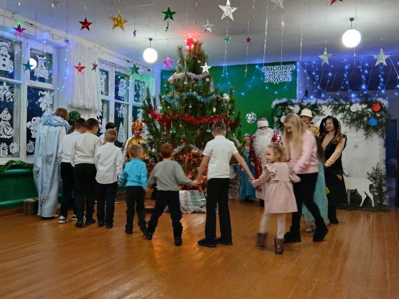 Зрители овациями благодарили юных артистов. Ребята вместе со Снегурочкой и Дедом Морозом водили хоровод вокруг красавицы елки, со Снегурочкой играли в снежки, а от Деда Мороза получили сладкие подарки.