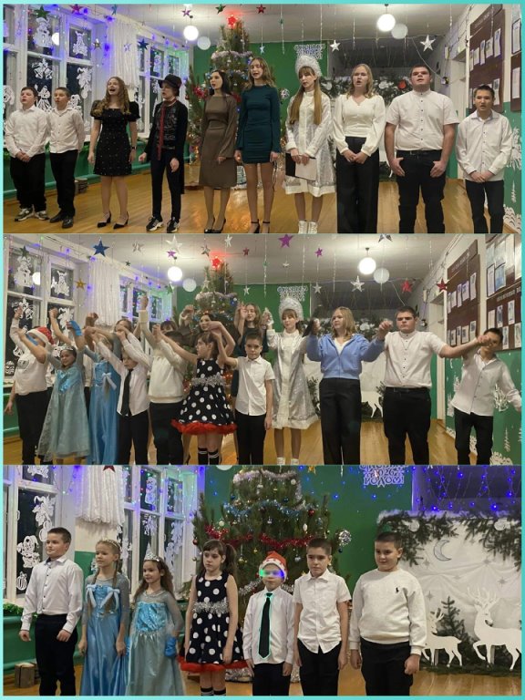 Новый год – это время волшебства, доброй сказки и ожидания чуда! Один из самых любимых, долгожданных, радостных и душевных праздников! Праздничное новогоднее настроение поселилось и в Полоцкой школе. Началось оно с традиционного украшения классов, рекреации к новогодним праздникам. Ребята очень старались. Вместе с классными руководителями проявили невероятную фантазию при оформлении. Неповторимая атмосфера предстоящего праздника захватила всех и наступило время «Праздника зимних чудес». Сверкающая ёлка, украшенная гирляндами и игрушками, создала атмосферу волшебства. Зал превратился в театр, на сцене которого разыгралось сказочное представление. Декорации, костюмы, музыкальные заставки и, конечно же, актерские способности ребят никого не оставили равнодушными.