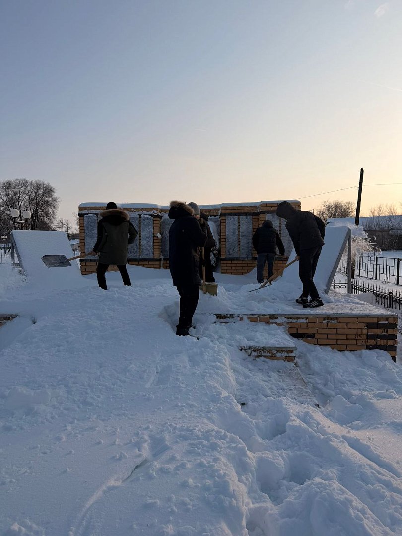 Участники «Снежного десанта» расчистили памятник участникам войны