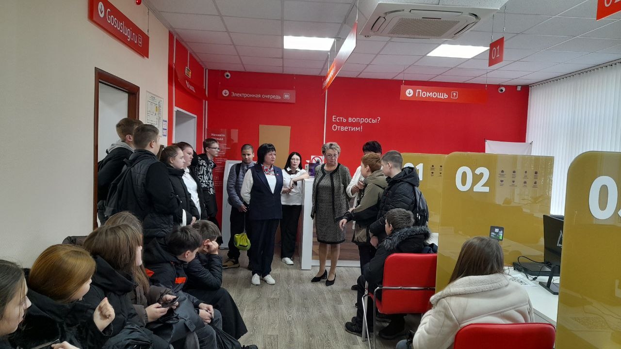 Во время экскурсии ребята увидели, как устроен центр изнутри, изучили работу информационных автоматов и электронной очереди, узнали о множестве услуг, которые можно получить быстро и в одном месте; познакомились с цифровыми сервисами, которые экономят время.