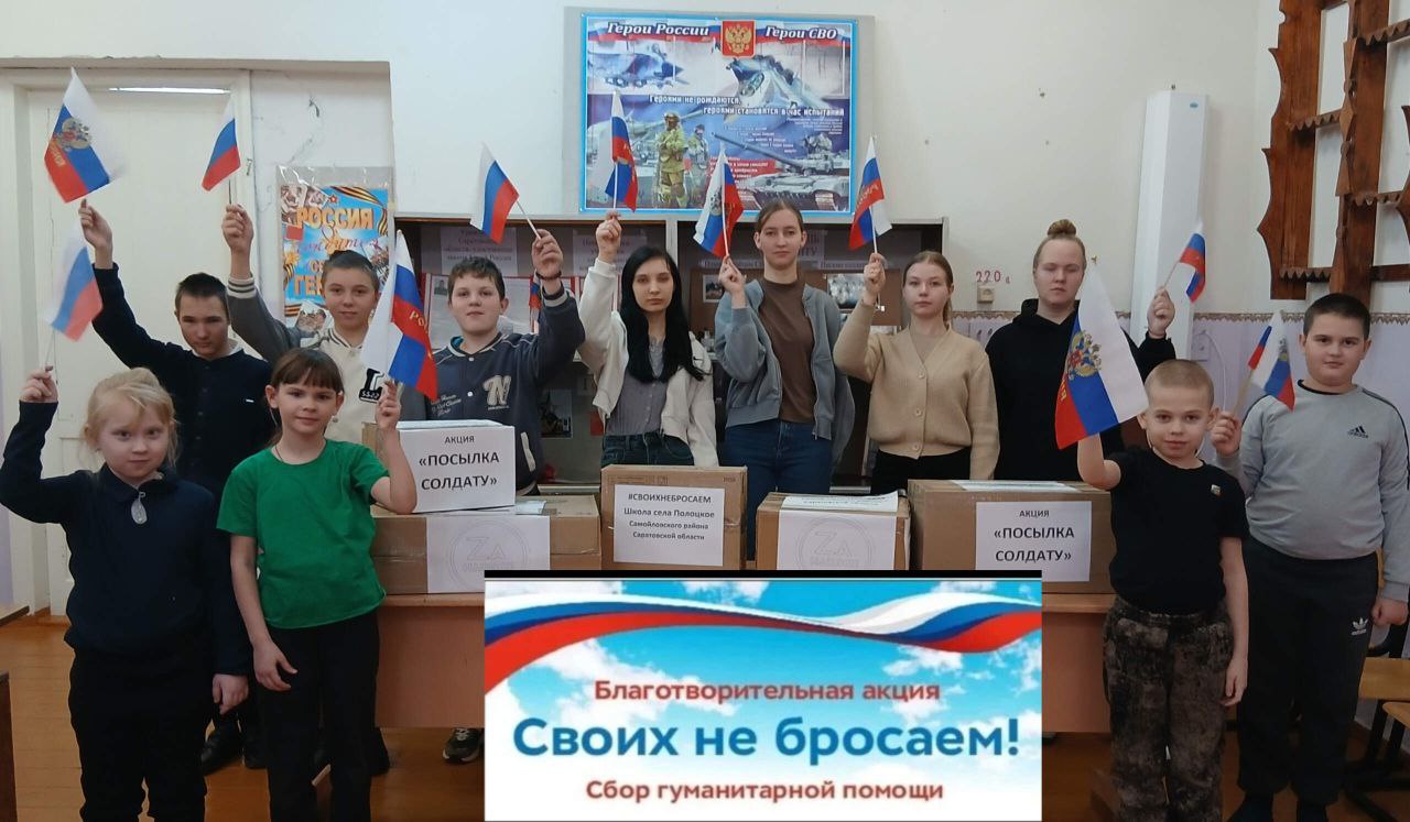 Накануне 23 февраля в Полоцкой школе прошла благотворительная акция «Своих не бросаем!». Был организован сбор подарков для участников СВО.