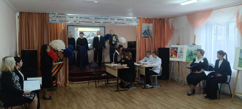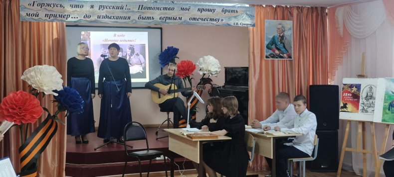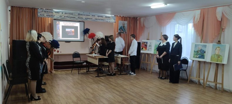 Ученики 9 класса Святославской школы Аксинья Аратова, Юлия Дронова, Артём Коробейников и Михаил Шевченко, участники «Урока мужества», который для них и зрителей провела Галина Ивановна Решетникова, а также ведущие-декламаторы Елена Александровна Комарова, Людмила Фёдоровна Кругова и ученицы 10 класса Полина Назарчукова и Татьяна Новохатская, постоянные участники общесельских мероприятий, не просто донесли информацию до гостей, а своим эмоциональным порывом создали атмосферу соучастия для всех присутствующих в зале. Бессменный участник художественной самодеятельности Наталья Мищенко исполнила патриотическую песню «Небесная рать», которая никого не оставила равнодушным.