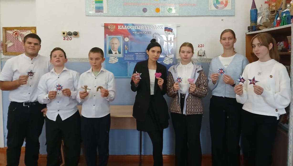 Вместе с организаторами акции учащиеся школы собирают гуманитарную помощь из пунктов сбора, затем сортируют и упаковывают по коробкам. В каждую такую коробку ребята кладут изготовленные своими руками обереги, рисунки, открытки и письма для наших военных.