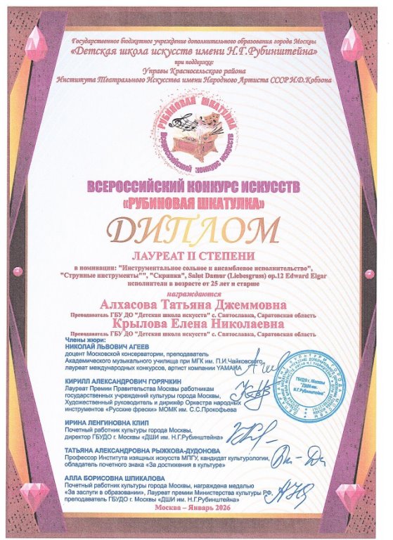 Подведены итоги Всероссийского конкурса искусств «Рубиновая шкатулка». Организаторы и учредители конкурса – Государственное бюджетное учреждение дополнительного образования «Детская школа искусств города Москвы имени Н.Г. Рубинштейна»