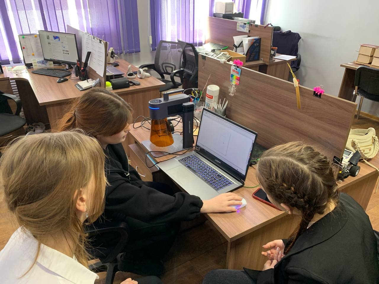 Для ребят провели увлекательную экскурсию педагоги технопарка – Е.А. Фрик и Д.Э. Бабаева. Школьников познакомили с современными технологиями: они узнали секреты виртуальной реальности, увидели в действии станок для лазерной гравировки и другое высокотехнологичное оборудование.