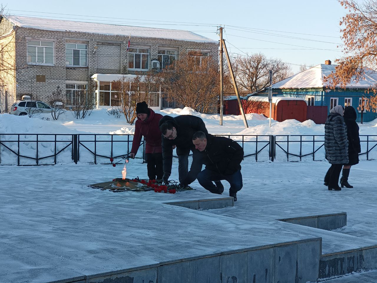 Самойловцы возложили цветы к Вечному огню, отдали дань памяти павшим у памятника, склонив головы в минуту молчания.