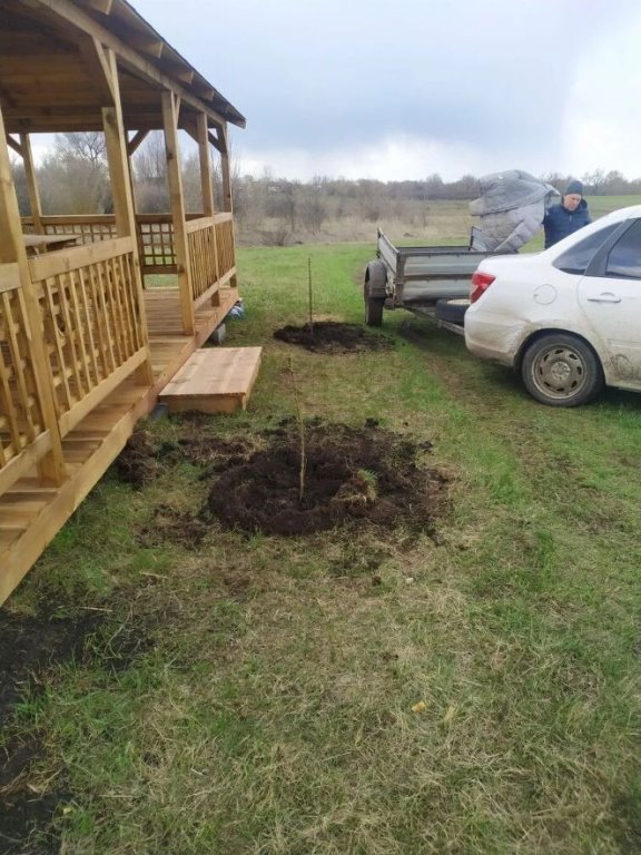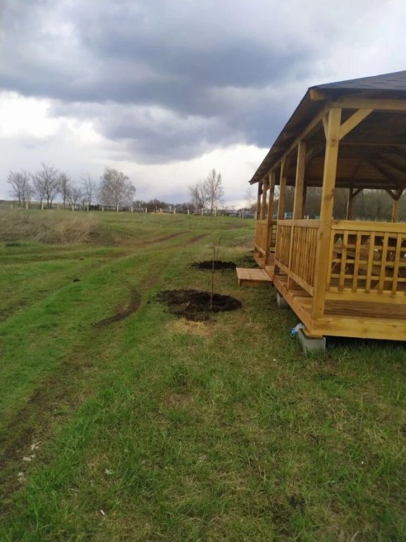 Благоустройство зоны у беседки на сельском кладбище в с. Низовка вышло на новый этап – здесь посадили деревья.