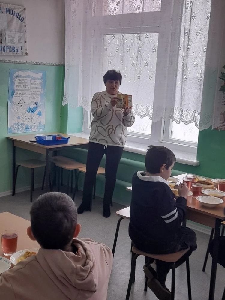Второе занятие проводилось с учащимися начальных классов «Определение кислотности молока». Педагог рассказала детям, почему прокисает молоко, и о пользе кисло-молочных продуктов.
