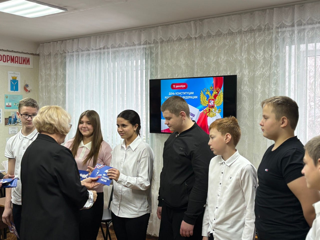 Сегодня, в День Конституции Российской Федерации, в Центральной библиотеке имени А. С. Пушкина состоялась торжественная церемония вручения паспортов учащимся Самойловской средней школы.